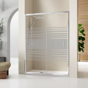 La apertura corredera nos permite acceder cómodamente al interior de nuestra ducha deslizando hacia los laterales las puertas de nuestra mampara. Sin lugar a duda una solución práctica y estética.